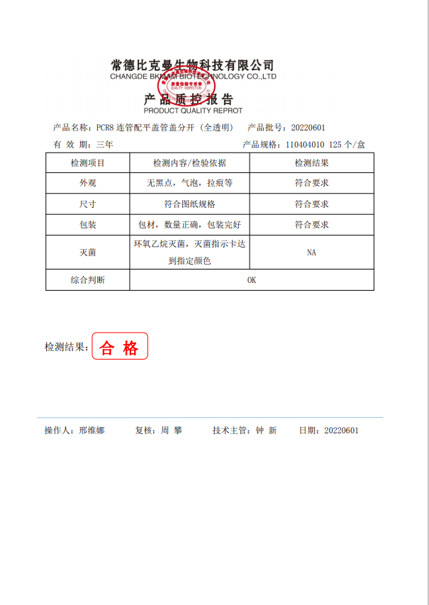 PCR八連排管 0.1ml PCR8連管配平蓋管蓋分開(kāi) (全透明) 125個(gè)盒 110404010 20220601