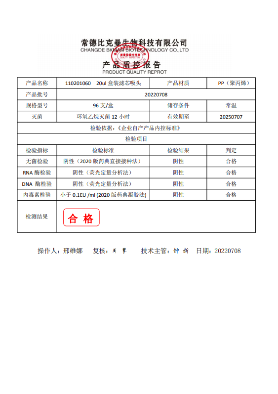 盒裝濾芯吸頭 20ul 盒裝濾芯吸頭 96支裝 110201060 20220708