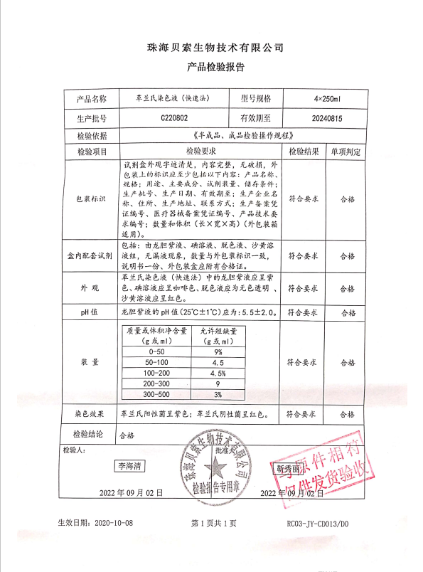 貝索 革蘭氏染色液(快速法) 250ml4盒 BA4012 C220802