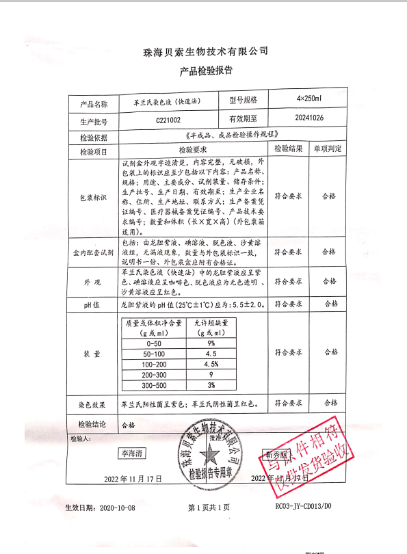 貝索 革蘭氏染色液(快速法) 250ml4盒 BA4012 C221002