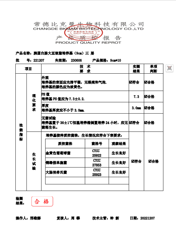 110704022 胰蛋白胨大豆瓊脂(三層包裝) TSA瓊脂平板 9cm 10個袋 221207