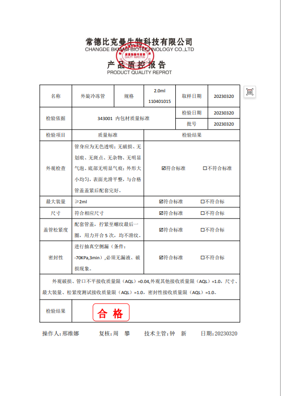 110401015 比克曼生物 外旋冷凍管 (凍存管) 2.0ml 100個袋 20230320