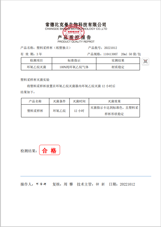 110413007 比克曼生物 采樣杯 (紙塑獨(dú)立) 20ml 1個(gè)袋 50袋包 20221012