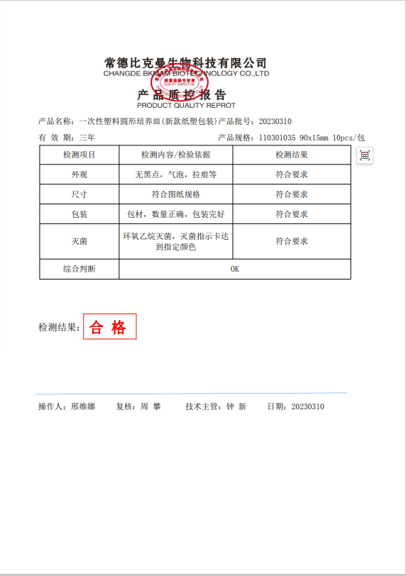 110301035 bkmamlab 一次性圓形塑料培養(yǎng)皿 經(jīng)濟(jì)款紙塑包裝 90*15mm 10個袋 20230310