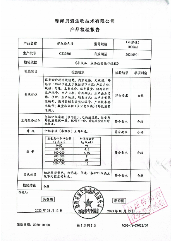 貝索 伊紅染色液(水溶性)1000ml BA4024 C230301