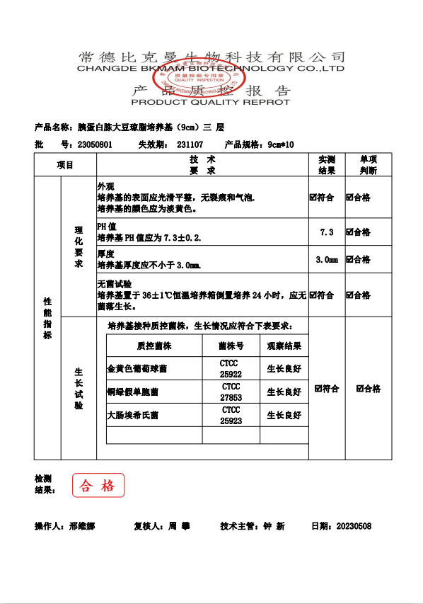 110704032 比克曼生物 胰蛋白胨大豆瓊脂(三層包裝) TSA瓊脂平板 9cm 10個(gè)袋 23050801