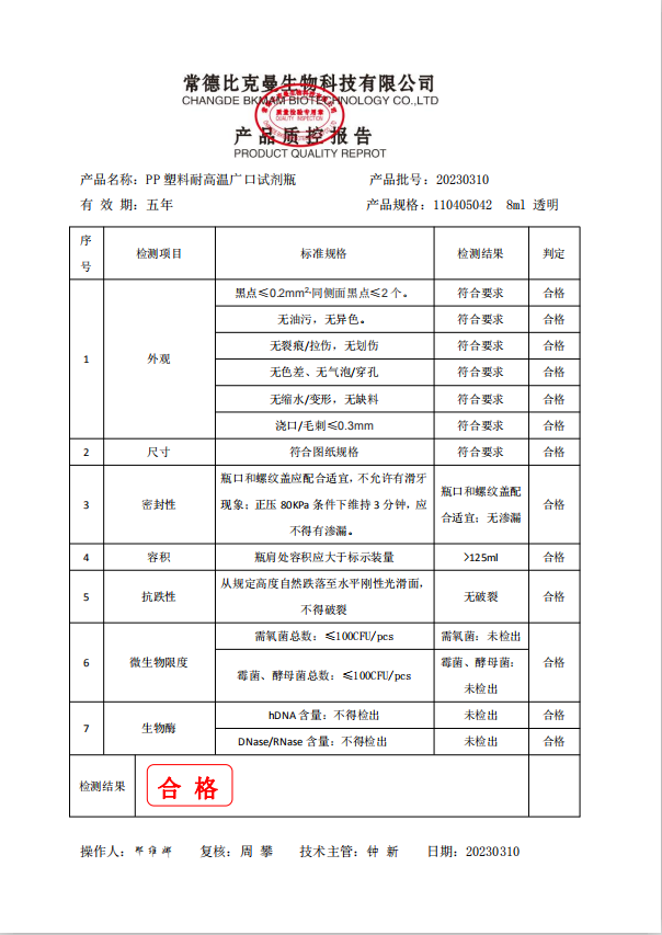 110405042 bkmamlab pp塑料耐高溫廣口試劑瓶 8ml 透明 200個袋 20230310