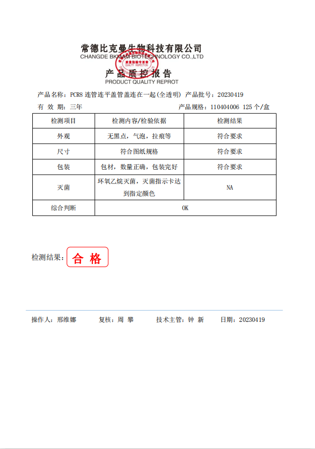 110404006 bkmamlab PCR8連管連平蓋管蓋連在一起(全透明) 0.2ml 125個(gè)盒 20230419