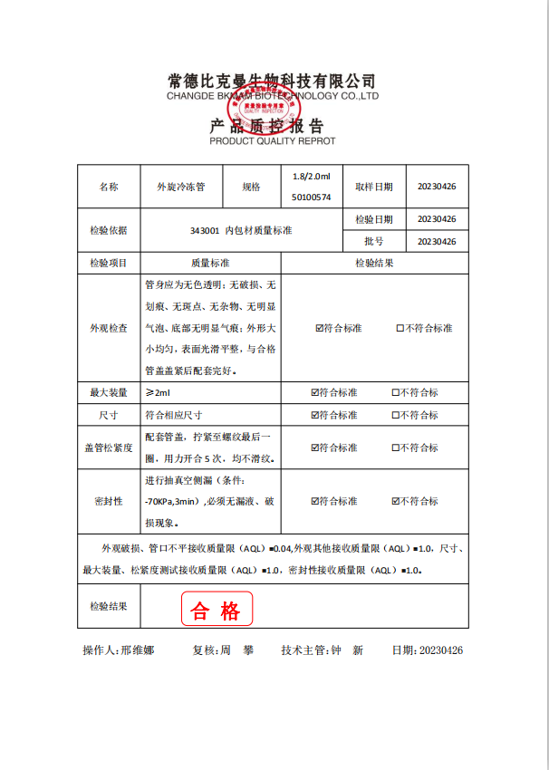50100574 比克曼生物 外旋冷凍管 (凍存管) 白色無色標 2.0ml 100個袋 20230426