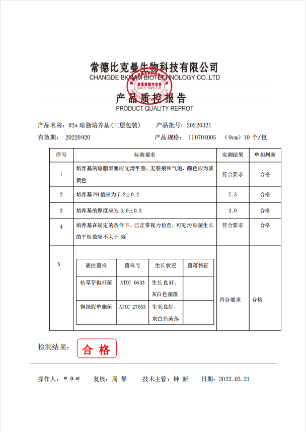 比克曼生物 R2a瓊脂培養(yǎng)基(三層包裝) 9cm 10個袋 110704005 20220321