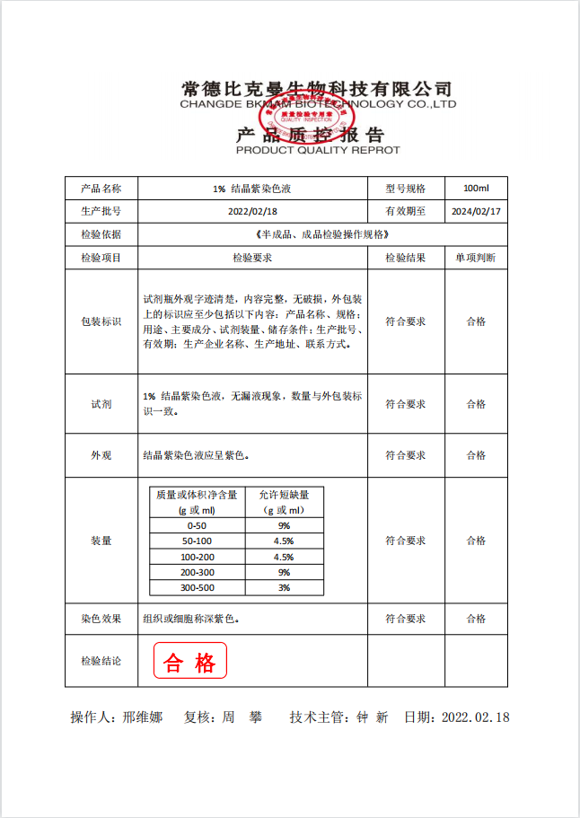 比克曼生物 結晶紫染色液 1% 100ml 1支裝 110703012 20220218