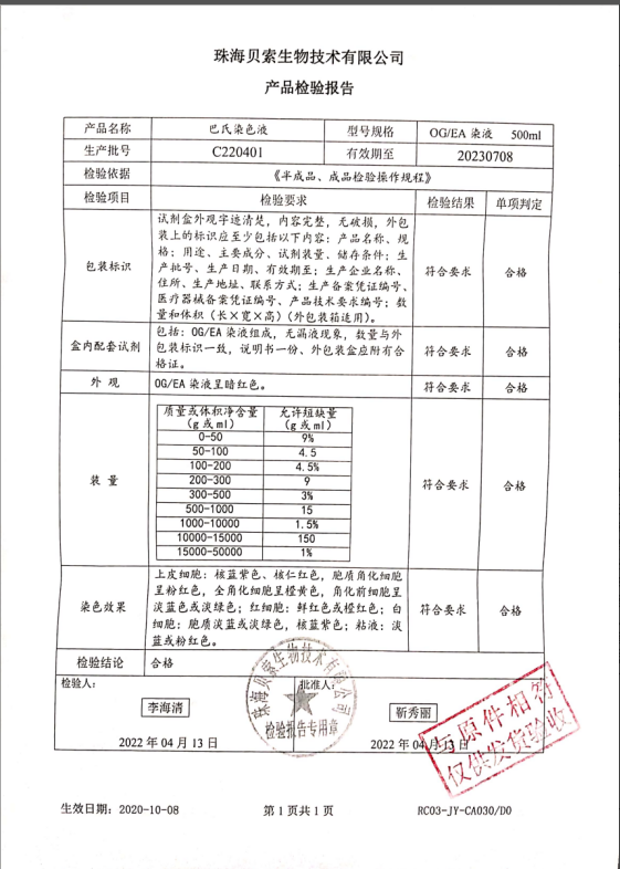 貝索 巴氏染色液 OG-EA 500ml BA4133 C220401