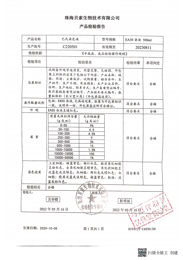貝索 巴氏染色液 EA-50 500ml BA4033A C220501